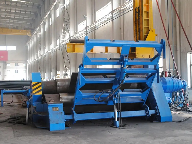 5. 四輥卷板機預彎曲:將前后輥調整到工作所需的相應位置,并啟動上輥進行成型和彎曲。